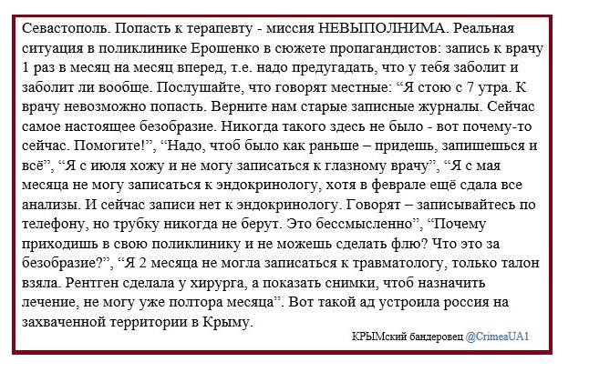 Dazdraput: Вот хотел бы спросить крымнашей, было ли так при Украине. Но никто же их них честно не ответит. Сволочи просто.