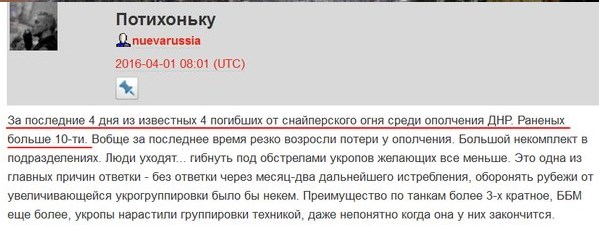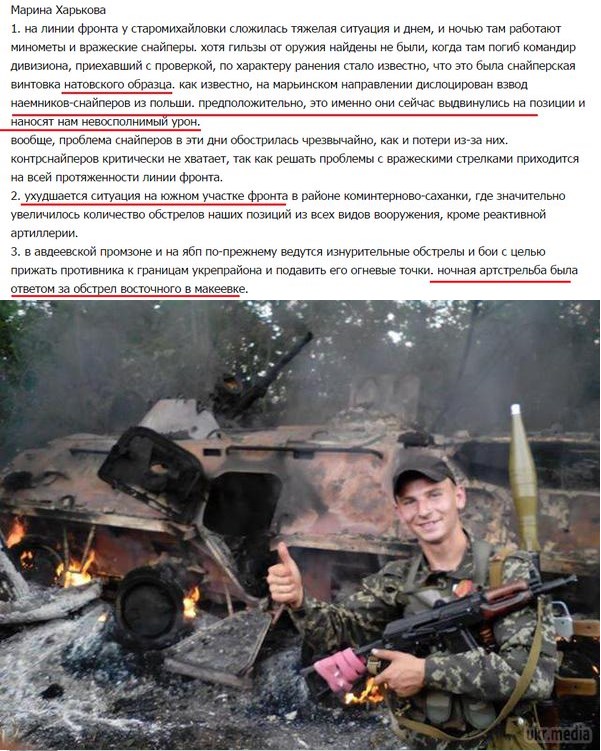 В свою очередь сепаратисты массово жалуются на большие потери от украинских снайперов, которых для оправдания называют польскими с американским оружием (смотри скрины).