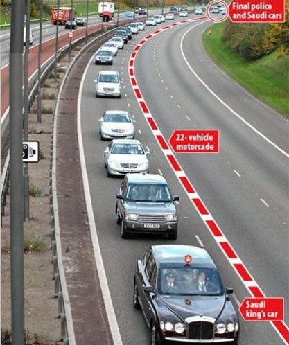 Хуан Карлос I - король Испании. Кортеж 15-18 автомобилей: Mercedes Benz S600, BMW 5 Series. Движение перекрывают только когда король едет по государственным делам.