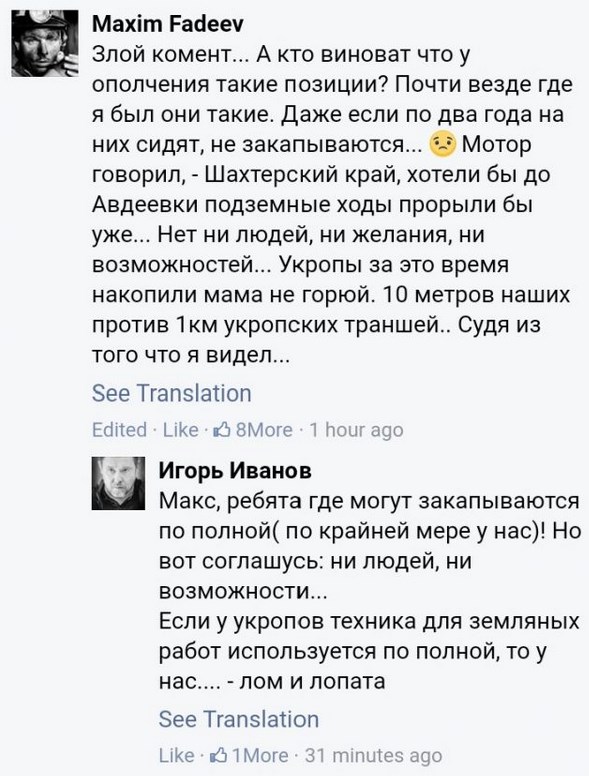 Смогут ли ВСУ занять эти три окопа? Мы не знаем. Но очевидно, что они разрушены, и ДНР там будет очень сложно окопаться еще раз. Кстати, террористы (в том числе и Ходаковский) признают, что позиции были очень плохо оборудованы (смотри скрины) и сетуют, что так везде.